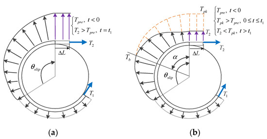 Figure 3b is the tension distribution diagram of the cable in the process of unloading. The outcoming tension is firstly increased from to , and then gradually reduced to . At this time, the cable only partially moves on the pulley.