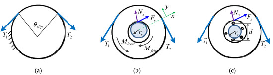 For the pulley of type (b), if Fs > Fc, then ; if , then , and the friction between the pulley and pulley shaft can be expressed as: