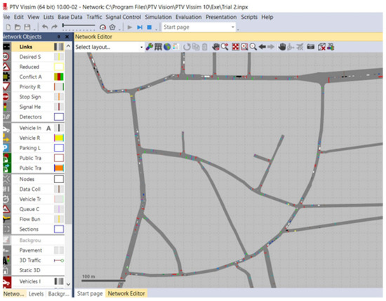 Presentation of a part of simulation experiment results in PTV Vissim.