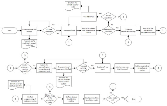 The draft of original methodology is based on a gradual implementation of individual steps, while the SimTalk software is actively being used to program missing functions along with graphic tools enabling the creation of a discrete traffic node micromodel. The proposed methodology is generally valid from the point of view of traffic, but its application is designed only for Tecnomatix Plant Simulation software.
