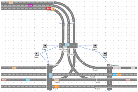 A very important operation is a correct alignment not only of inputs and outputs, but also of the lanes themselves in the model. It often happens that an incorrect objects alignment paralyzes the whole model. The connectors as shown in Figure 6 can also be hidden in settings.