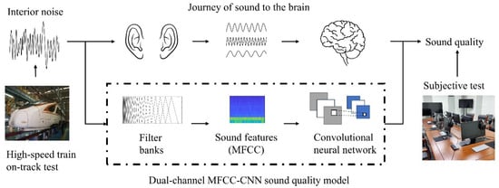 Therefore, this paper aims to develop a new sound quality model for HSTs to overcome the above challenges. Figure 1 shows the basic structure of the proposed model. The proposed model was inspired by cognitive science which attempts to combine perspectives of biology, neuroscience, and psychology to gain a better understanding of human cognitive faculties. It tries to simulate the steps of the hearing process, and it contains Mel-scale filter banks, MFCC features, and CNNs.