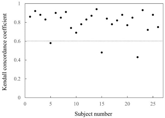 The Kendall concordance coefficient of each subject is shown in Figure 12.