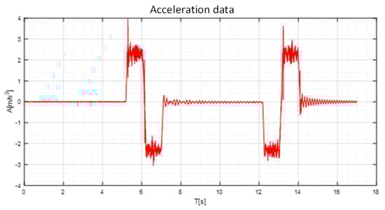The results obtained for the axis in which the programmed movement of the robot took place are shown below (Figure 6, Figure 7, Figure 8 and Figure 9).