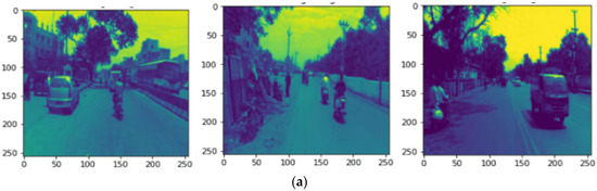 It is observed from the table that the IoU value for some classes, such as non-drivable areas and road objects, is low due to the uncertain view of both classes in the IDD-Lite dataset. Since the roads are covered with mud, it isn’t easy to distinguish between the drivable and non-drivable areas. The experimental segmentation results for the generated weighted models are shown in Figure 6, with some input images from the IDD-Lite dataset and the corresponding ground truth values. The final mask output for the different ensembled segmentation models, such as U-Net, LinkNet, FPN, and PSPNet, are represented in Figure 6c, Figure 6d, Figure 6e, and Figure 6f, respectively. Although the proposed ensembled method has significantly improved in clearly segmenting each pixel in an image, it still faces challenges in segmenting occluded objects in an image or things of the same class that exist together. Nevertheless, it is significant that the formulated meta learning model works reliably on an unstructured roadway with diverse environmental conditions.