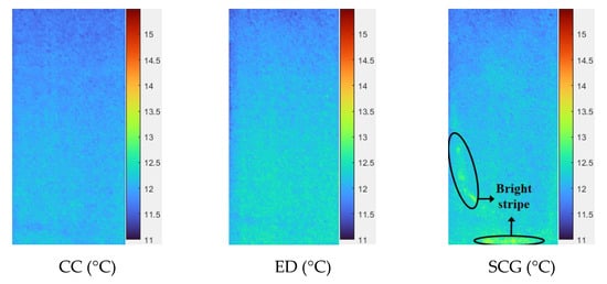To solve the problems mentioned above, reference samples were added to the experimental system, and a background thermal noise correction model was used to denoise the AIRT of the loaded sample. Although the background noise correction model was implemented to obtain the AIRT variations of the loaded sample, the noise could not be removed entirely []. For example, as shown in Figure 8, the AIRT of the reference sample after denoising still fluctuates (the maximum fluctuation range is 0.03 °C). This means that the error range of noise interference on the AIRT value of the loaded sample surface after denoising may reach 0.03 °C. This may also be an important reason as to why some experimental phenomena could not reasonably be well explained.