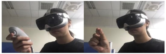 Early studies of gesture recognition were assisted by leap-motion or other sensors [4,5]. For example, studies compared the joystick and gesture recognition using different sensors [6,7,8,9], and following the users’ experience, surveys and analyses of the users’ perception and performance were conducted. Although a few studies have involved leap motion-based gesture recognition, it must be manually fixed on the VR helmet, as the leap motion cannot move along with the helmet [10]. Other studies [11] added tactile sensing to the gloves to make users’ interaction with the virtual world more intuitive. However, the gloves must be worn in advance, and the users are unable to move around and must sit in a fixed position. Also, it is costly to have the additional cameras necessary for motion capture. On the other hand, the XRSPACE MANOVA headset’s gesture recognition simply requires users to wear the helmet and keep their hands in front of the helmet’s cameras to perform hand gestures. There is no need to set up sensors beforehand, and there is no restriction on users’ ability to move around. Additionally, the cost of XRSPACE MANOVA is comparatively less than that of sensor-based gesture recognition systems.
