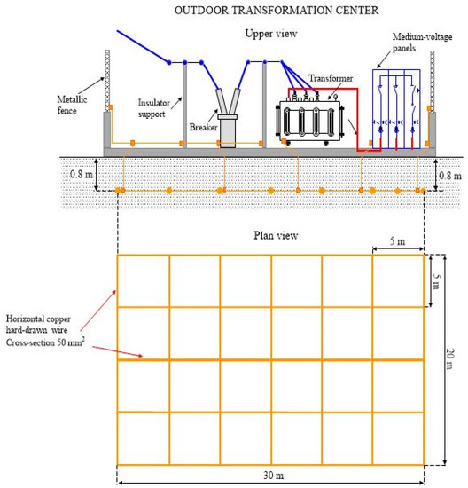 As a second application example, the grounding grid of an outdoor transformation center, like the one shown in