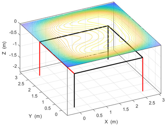 Figure 9 shows a contour plot of the GPR produced by the resistive, partially covered electrode. The covered parts of the electrode are marked in black. As in the previous examples,