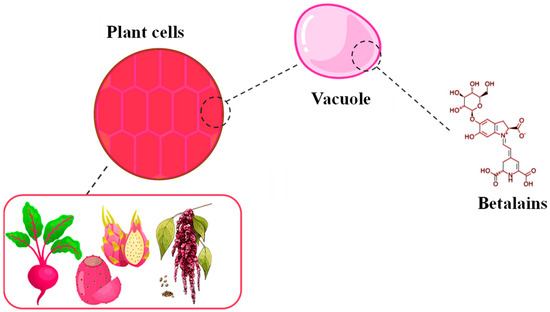 Schematic representation of the main sources and vacuole structure containing betalains.