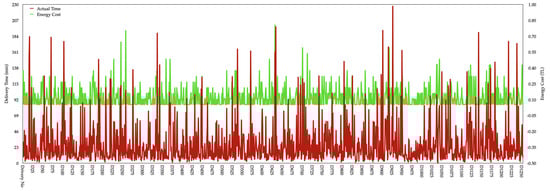 The comparison between delivery time and delivery energy cost based on the testing data.