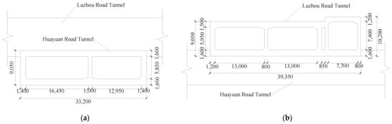 Two orthogonal sections of “Huayuan-Luzhou” Crossing Point: (a) Huayuan Road and (b) Luzhou Road (unit: mm).