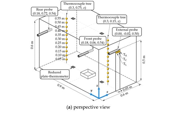 - Lock, A.; Bundy, M.; Johnsson, E.L.; Hamins, A.; Ko, G.H.; Hwang, C.H.; Fuss, P.; Harris, R. Experimental Study of the Effects of Fuel Type, Fuel Distribution, and Vent Size on Full-Scale Underventilated Compartment Fires in an ISO 9705 Room. NIST Technical Note 1603, Gaithersburg, Maryland, USA. 2008. Available online: https://tsapps.nist.gov/publication/get_pdf.cfm?pub_id=861620 (accessed on 21 November 2022).