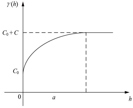Covariance function models commonly used in kriging theory include the exponential model, the spherical model, and the gaussian model [34]. As the exponential model has better generalizability compared to the spherical model, the Gaussian model may not be interpolable at certain locations. With overall consideration, the exponential model was chosen to fit the covariance function, as seen in Equation (7).
