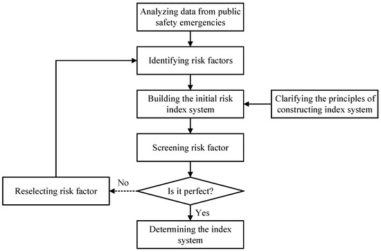 The construction of the urban public space safety risk evaluation index system can be divided into five steps, as shown in Figure 2. First, the data on public safety emergencies in recent years are analyzed. Then the risk factors affecting urban public safety are summarized. Finally, a preliminary risk evaluation index system is established.