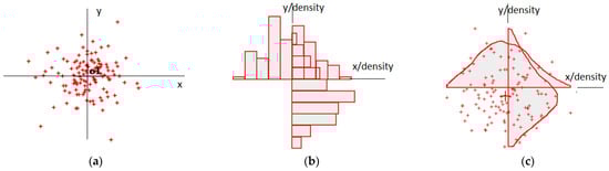 Figure 2. In the left part, I present the raw experimental data as the output of the various recorded experiments. I further upgraded the x- and y-axis histograms, and I evaluated the empirical data structures according to the embedded uncertainty. The doubtfulness is the main factor to consider when obtaining the converted forms of stepwise density functions. To achieve unique solutions, the density functions should be locally injective ones.