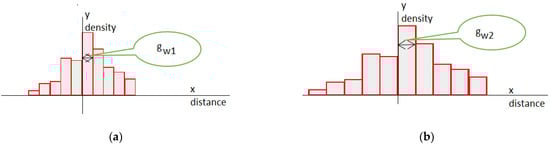 Figure 5. The MF reaches a value of 1 in the middle of a bin, and it might return values of 0.5 at the cell’s limits (see the left presented case). Because the function should respond to the uncertainty that is included within the histogram, its scope is likely to extend beyond the cell’s limits (see the right part of