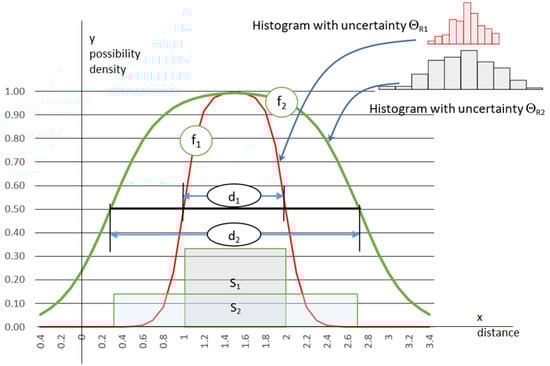 Equation (6) expresses one of the most practical aspects of the introduced concept of the exploitation of the histogram uncertainty. Given the referential fuzzy object with its doubtfulness and MF range, the uncertainty attributed to the related structure allows us to deduce its membership diagram expansion.