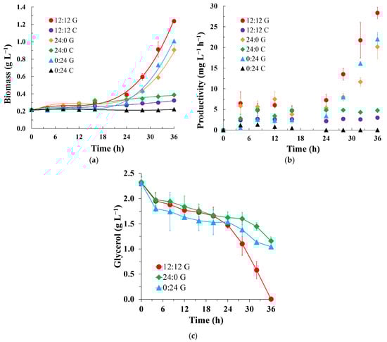 - Paranjape, K.; Leite, G.B.; Hallenbeck, P.C. Strain variation in microalgal lipid production during mixotrophic growth with glycerol. Bioresour. Technol. 2016, 204, 80–88. [Google Scholar] [CrossRef][Green Version]