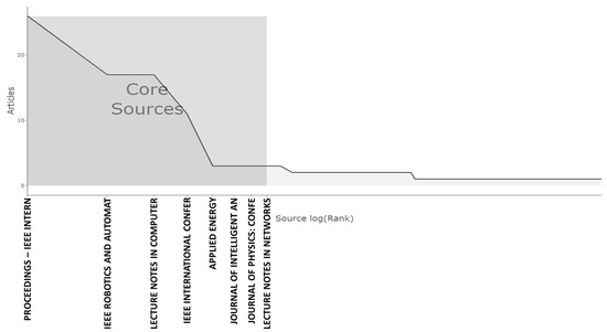 Finally, an analysis of the journals was carried out following Bradford’s Law, a law of diminishing returns in which journals are divided into three zones depending on the frequency of citation [49]. Figure 5 shows in descending order the essential sources of information when looking for DRL knowledge.
