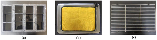 On this basis, tests of three typical freeze–thaw modes can be used as follow: immersion freeze–thaw cycles, capillary freeze–thaw cycles, and periodic saturation freeze–thaw cycles. The simulation of freeze–thaw conditions is shown in Figure 3. The immersed freeze–thawed rock samples were completely immersed in water during the cycles, the capillary freeze–thaw rock samples were placed on the cotton towels filled with water in the tray, and the periodically saturated freeze–thaw rock samples were placed on the iron frame for five freeze–thaw cycles after 48 h of saturation. The times of freeze–thaw cycles were set to 0, 5, 10, 20, 40, 60, and 80 times, and there are totaling 147 rock samples, as shown in Table 1. The samples of control groups (0 cycle) of various modes were placed in the same water environment and maintained at a constant temperature of 25 °C.