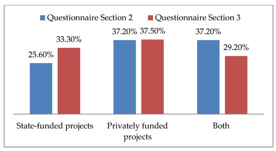 Processed results of Section 1 of the questionnaire. The question “Types of projects implemented by the experts”.