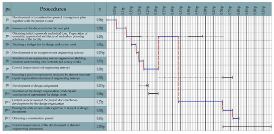 Additionally, our analysis of other works has shown that the study of the duration required for the procedures flow, the identification of factors affecting their flow and the possibility of combining the procedures flow in time during the stages of pre-project preparation and design development is relevant [13,14,15,16,21,22,23,24,25,26,27,28,29,30].