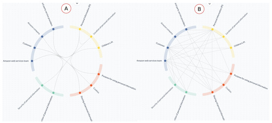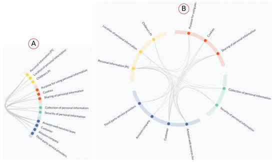 TranspVis provides a simple Infolet representation of each keyword (or element) in the circle view. When the user selects IE, Figure 2F shows the details of the selected user (as it is explained in Section 2.1.1). For example, Figure 4A represents the details about “Personal information” element. According to this, the user can observe: ID, description, related IE, IE provider (for example, customer), and receiving/requesting/restricted stakeholders. They can also see them directly in circle view, as it is shown in Figure 5.