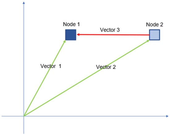As in the above equation, by performing subtraction on two vectors, a vector connecting the two vectors can be generated. Therefore, using the coordinate of the node to generate a vector separated by (x,y) from the zero point, each node can be connected in a straight line, as shown in Figure 5.
