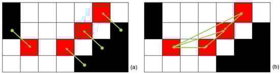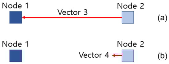 As shown in Figure 7a, if an obstacle other than the target node is encountered on the way, the algorithm determines that the two nodes cannot be connected. The algorithm connects the two nodes when Vector 4 reaches the target node without encountering an obstacle.