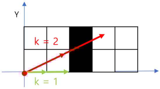At this time, Vector 4 may be used by adjusting the size by a multiple. As decreases, the obstacle recognition accuracy increases. Conversely, as increases, the accuracy decreases, but the speed increases. We recommend using a of 1 because when > 1, as shown in Figure 8, adjacent data may cross.