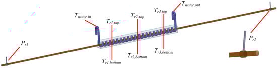 Pressure ports were soldered to the microfin tube, down- and upstream of the thermal section. The distance between the two pressure ports was 0.8 m. The upstream pressure port was connected to an absolute pressure transducer (accuracy ±1950 Pa), whereas both up- and downstream pressure ports were connected to a differential pressure transducer to measure the total pressure drop across the test section (accuracy of ±25 Pa). The entire test section was insulated with Armaflex® in order to minimize the heat losses through the ambient. This means that the two segments between the pressure ports and the part of the test section where the flow boiling occurs, i.e., where the wrapped tube is located, were considered adiabatic. Table 1 shows the accuracy of the implemented sensors for the measurements of the physical quantities.