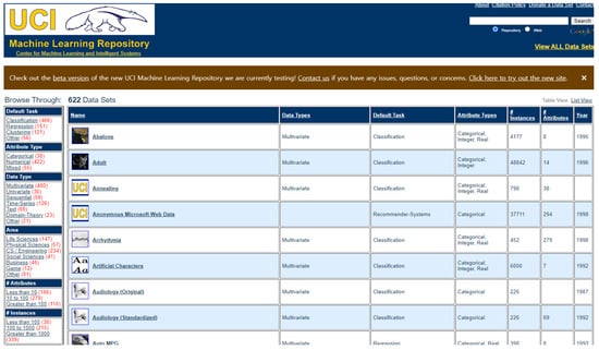 As verification data, the dataset of the widely used UCI machine learning repository was employed (Figure 1). It includes Iris, Wine, Glass, Vowel, Cloud, and CMC, which have been utilized in data clustering research. The data used in this study are summarized in Table 1.