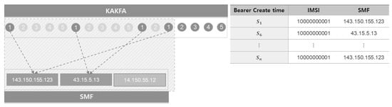 As a base station is an intermediary node serving as an only-one gateway between wireless and wired domains in the 5G network, it uses RRC and Next Generation Application Protocol (NGAP) for signaling messages in the control plane. The RRC protocol is used to control radio bearers between terminals and a base station, and NGAP is used to carry non-access stratum (NAS) between a base station and the AMF. Moreover, next-generation NodeB (gNB) is a 5G base station that has a radio coverage that geographically reaches 20 km2 or below [19]. Therefore, a few tens of gNBs are required to cover the service area of one metropolitan city such as Seoul.