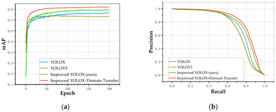 - The proposed improved YOLOX and domain transfer training strategies were validated on a real-world dataset. The experimental results showed that the improved YOLOX algorithm produced fewer errors than the original algorithm, and it was more accurate for nighttime vehicle/pedestrian detection when combined with a domain transfer training strategy.