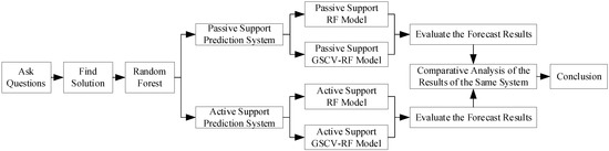 As stated previously, the GSCV-RF model can achieve superior prediction results for both passive and active support datasets. Additionally, the trained GSCV-RF model was used for the test set prediction, and the prediction result of the active support test sets was superior to that of the passive support test sets.
