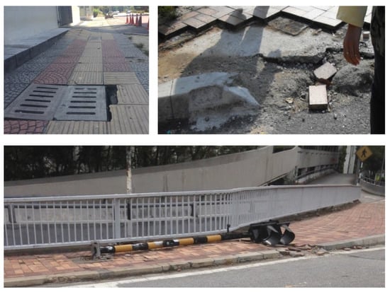 During the field research, safety was also noted as one of the key issues. Some of the poor road conditions jeopardising pedestrian safety were witnessed (Figure 4), as this often involves larger-scale damages forcing pedestrians to negotiate the trajectory in inadequate environments.