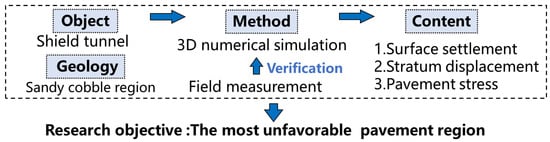 In view of the particularity of sandy pebble strata, a project with a shield tunnel crossing an operating airport in a sandy pebble area has not been reported. Based on the actual project in Chengdu and the numerical simulation test, this paper discusses the feasibility of shield tunnels undercrossing airports in sandy pebble areas, which can provide some technical support for shield construction in other sandy pebble areas. The research scheme is shown in Figure 5.