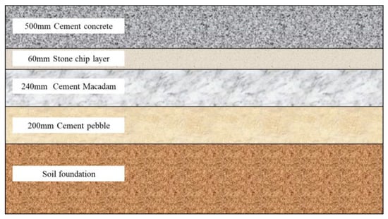 The stratum, grouting material, shield shell and lining were simulated using three-dimensional solid elements. For the grouting material, shield shell and lining, the elastic model was adopted. For soil, the Mohr-Coulomb model was adopted, and the material parameters used in this study are shown in Table 1 and Table 2. The binding constraints were set at the interface of the soil-shield shell, soil-grout and grout-lining. As shown in Figure 7, the runway pavement structure consisted of a concrete layer and a pebble layer. In this model, the pavement structure was simplified as linear elastic materials with an elastic modulus of 10,000 MPa. The groundwater infiltration and soil consolidation creep were not considered in this model.