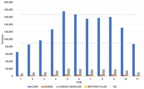 3.2. Travels and Equivalent CO2 Emissions in Each VVM Point
