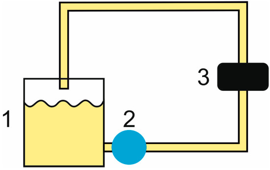 Block diagram of the pumping system used for testing the sensor: (1) milk container; (2) centrifugal pump; (3) laser scatterometric sensor.