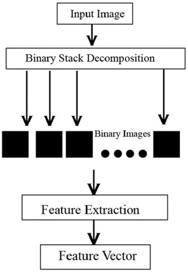 The SFTA extraction method can depend on two steps. Firstly, the set of binary images was created by applying the input grayscale image decomposition. The data were divided using the Two-Threshold Binary Decomposition (TTBD) technique [26].