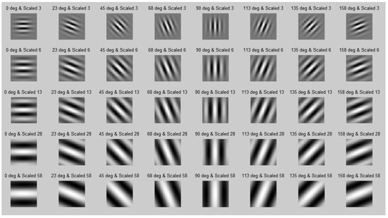 At different scales and orientations, Gabor features can be retrieved. Figure 3 shows the 2D Gabor filters in a variety of eight orientations and five scales [30].