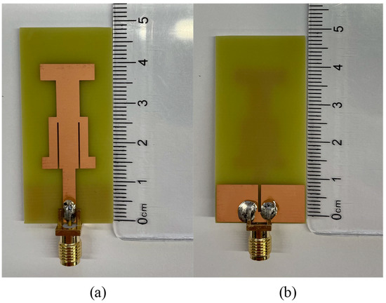 The real antenna: (a) front structure of the antenna; (b) reverse structure of the antenna.