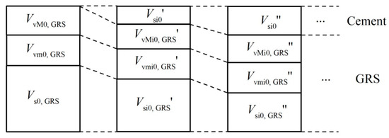 where VvMi0,GRS and Vvmi0,GRS are the volumes of the macro- and micro-pores of the GRS component in an as-compacted treated specimen, respectively. The Vsi0,GRS is the volume of the solid particles of the GRS component in an as-compacted treated specimen.