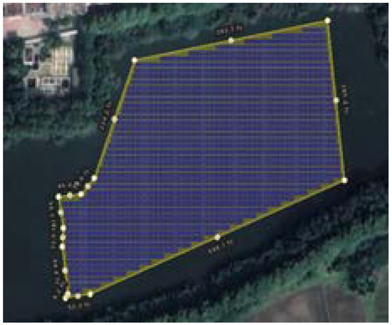 FSPVS are self-regulating and the FSPVS may increase their producing efficiency by 11% over land-based PV systems as temperatures rise [26]. In addition to limiting water evaporation, the floating solar panels also block excessive sunlight, avoiding an algal growth in the process. Layout of the PV site is shown in Figure 7.