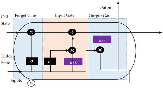 LSTM is an improved version of a recurrent neural network (RNN) [30]. It is a deep learning algorithm that has been set up to perform forecasting in the field of hydrology and water resources [31]. It eliminates the issue of overfitting and can yield better generalization than standalone models. The network captures long-term dependencies and deals with vanishing gradient limitations that exist in the original RNN [32]. The LSTM network (see Figure 1) comprises blocks of memory cells, an input gate, an output gate and a forget gate. The network operates like a chain [33] and can deal with delays such as seasonal and trend patterns [34]. The input gate manages the extra information added to the cell state.
