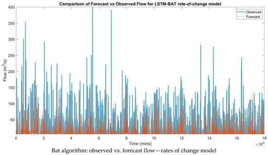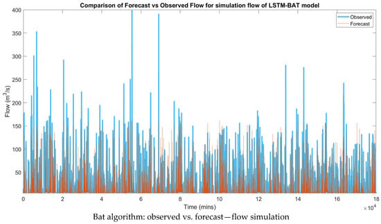 model for the bat algorithm with LSTM hybrid model yielded the best results with R (training) = 0.9757, R (testing) = 0.9046, MSE (training) = 4.7187, MSE (testing) = 19.8966, MAE (training) = 0.4672 m3/s, MAE (testing) = 0.8565 m3/s, NSE = 0.9514 and RMSE = 2.1723 m3/s.