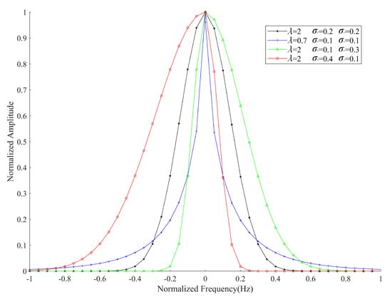 By introducing the weight parameter , according to the properties of acceleration micro-vibration signal data and Equation (9), the normalized acceleration spectrum curve expression can be obtained as follows: