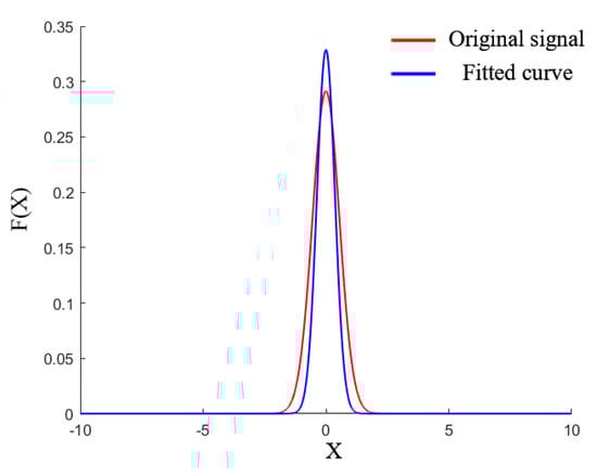 In the actual acceleration signal data processing, the acceleration spectrum curve cannot be simply represented by a single asymmetric generalized Gaussian distribution curve. The asymmetric generalized Gaussian distribution lacks flexibility in fitting the real acceleration signal data. The asymmetric Gaussian mixture model [28] not only effectively solves the problem of the limitation of the curve shape of Gaussian distribution, but is also more flexible in fitting the actual acceleration signal data and can fit the asymmetric data better and faster. The expression of the asymmetric Gaussian mixture model is as follows.